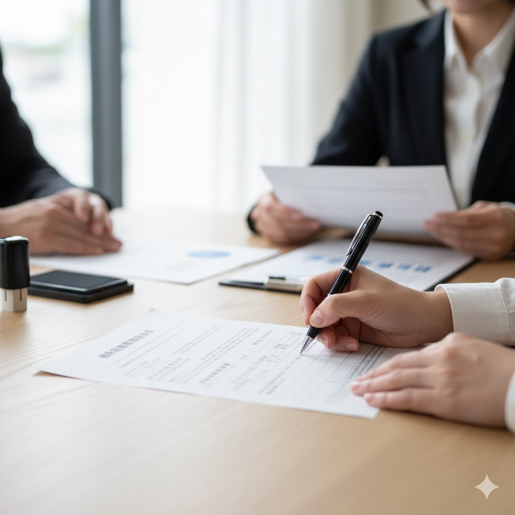 「ここだ」と思える1軒が決まりましたら、入居のお申し込み手続きを行います。必要な書類のご案内や、お申し込みから審査までの流れを分かりやすく丁寧にご説明します。不安な点があれば、どんな些細なことでもお気軽にご相談ください。