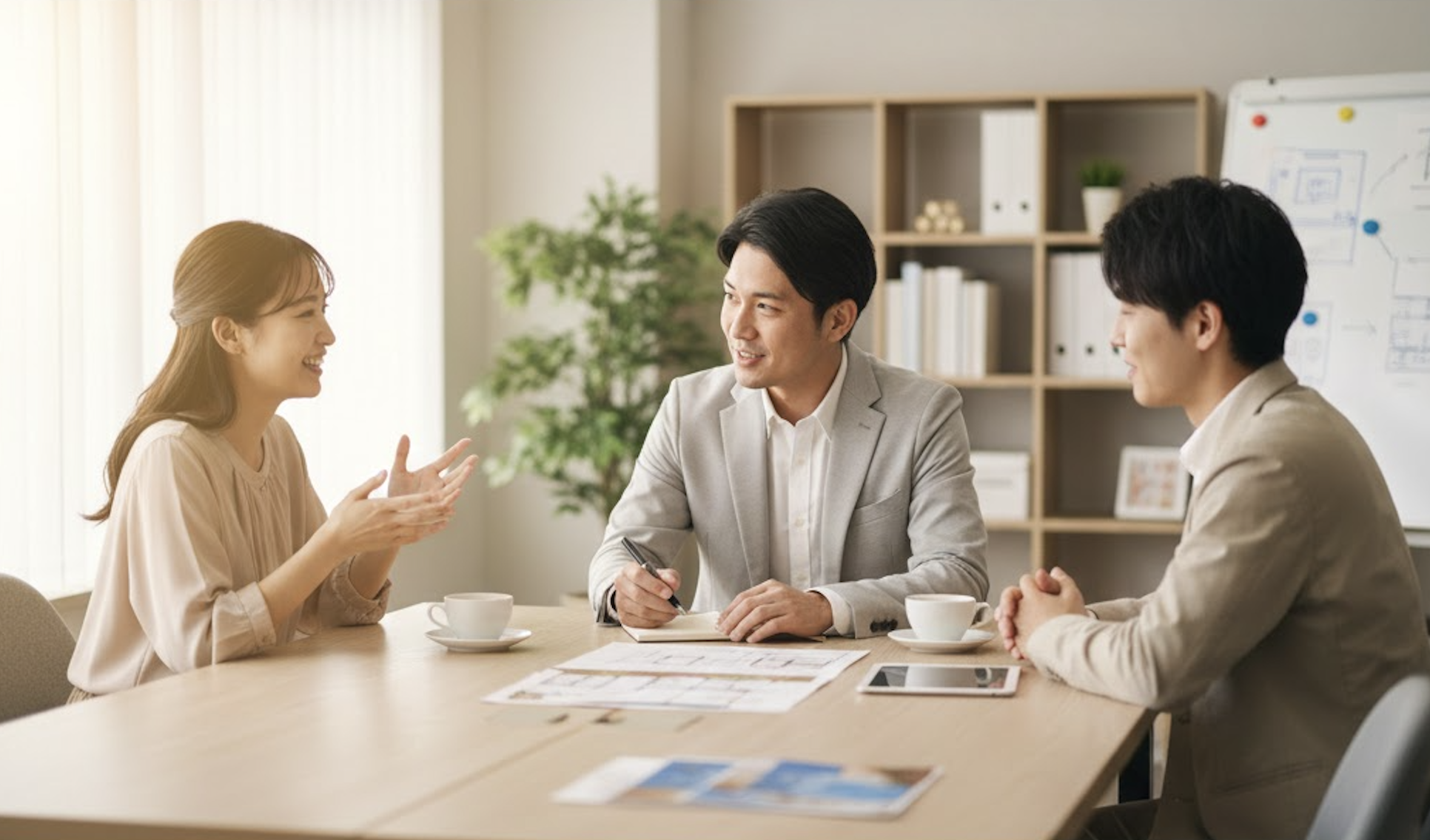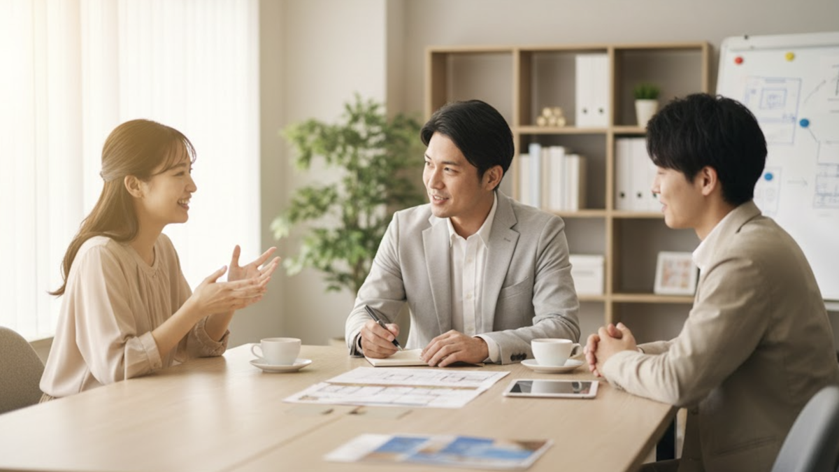 まずは、あなたの理想の暮らしについてお聞かせください。 中野駅徒歩2分の店舗でのご相談はもちろん、オンラインでのミーティングも可能です。「治安が良いエリアがいい」「仕事に集中できる静かな部屋」など、具体的な条件から抽象的なイメージまで、プロのスタッフが丁寧に汲み取ります。